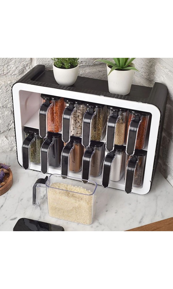 Standlı 12 li Kendinden Yapışkanlı Kaşıklı Kapaklı Baharatlık Takımı - Siyah Beyaz Modern ve şık tasarıma sahip Ergonomik ve kolay kullanımlı Duvara monte edileiblir.