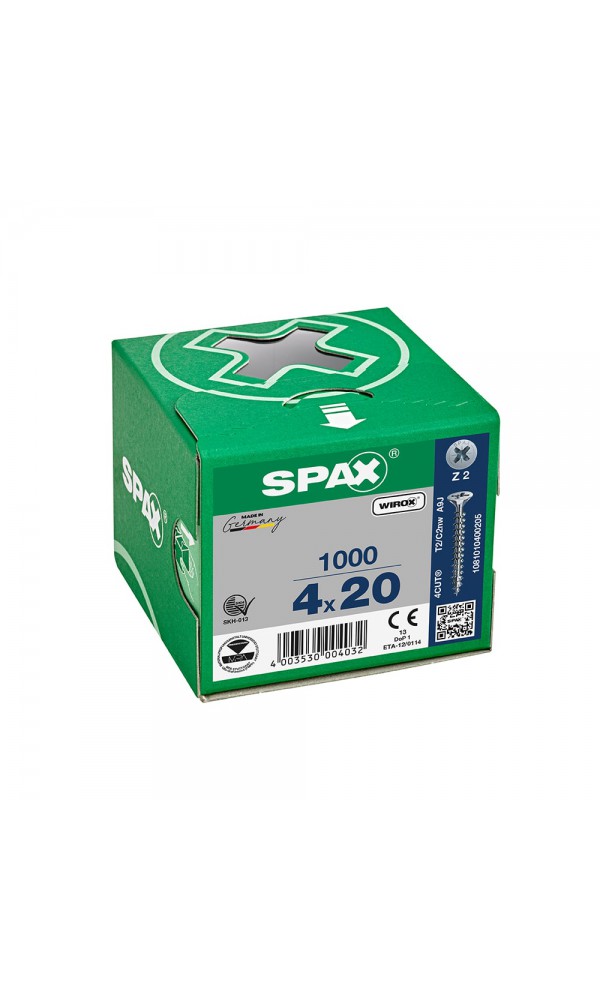 Spax Sunta Vidası, Evrensel Vida,, 4 x 20 mm, 1.000 Adet, Tam Dişli, Havşa Başlı, Yıldız Z2, 4KESİCİ UÇlu, WIROX Kaplama