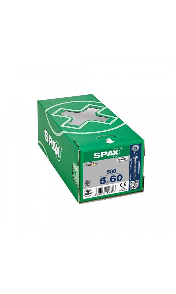 Spax Sunta Vidası, Evrensel Vida, 5 x 60 mm, 500 Adet, Tam Dişli, Havşa Başlı, Yıldız Z2, 4KESİCİ UÇlu, WIROX Kaplama