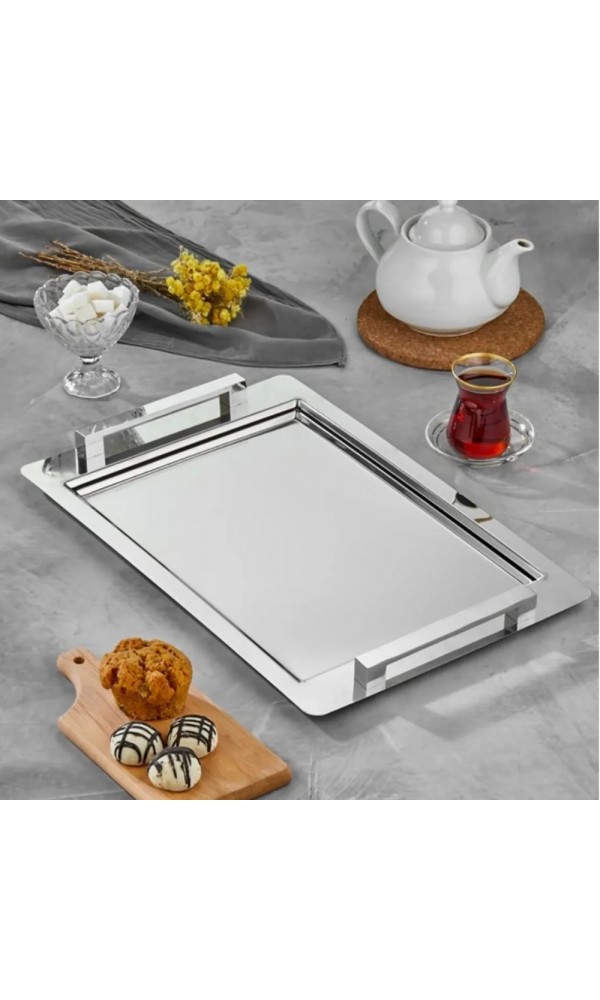 bersachef Karadelen 18/10 Cr-Ni Paslanmaz Silver Servis ve Çay Tepsisi