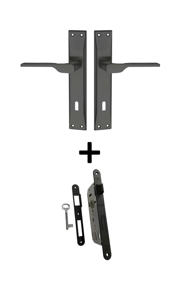 Bersa Yapı Veroni Aynalı Oda Kapı Kolu ve Sesiz Gömme Kilit Mat siyah 1 Kapılık Takım Siyah Kapı Kilidi 40mm