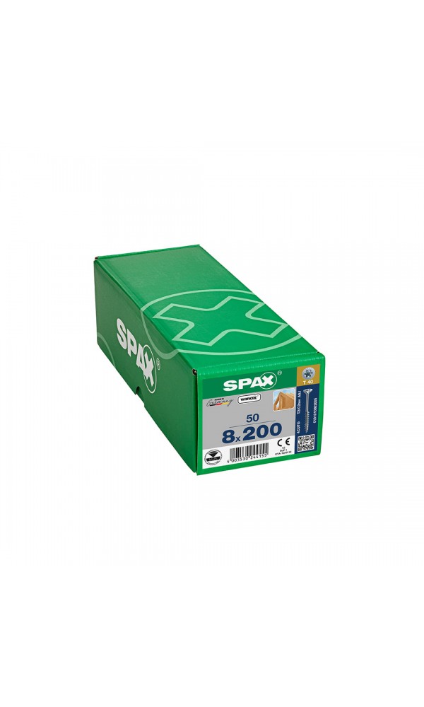 Spax Ahşap Konstrüksiyon Vidası, 8 x 200 mm, 50 Adet, Yarım Dişli, Havşa Başlı, T-STAR plus T40, 4KESİCİ UÇlu, WIROX Kaplama