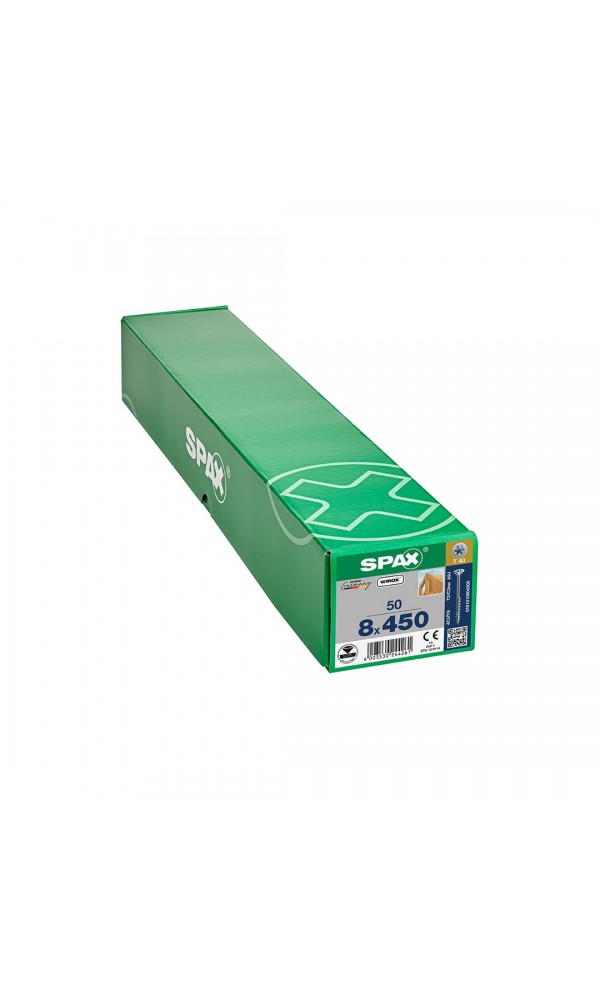 Spax Ahşap Konstrüksiyon Vidası, 8 x 450 mm, 50 Adet, Yarım Dişli, Havşa Başlı, T-STAR plus T40, 4KESİCİ UÇlu, WIROX Kaplama