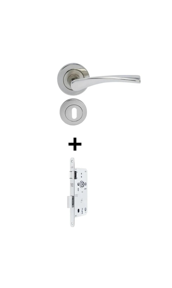 Bersa Yapı Bravo Rozet Oda Kapı Kolu ve Sessiz Gömme Kilit Mat siyah 1 Kapılık Takım Nikel Kapı Kilidi 40mm