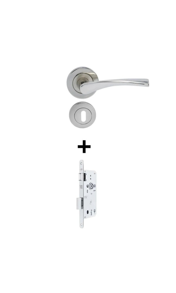 Bravo Rozetli Oda Kapı Kolu Nikel Sesiz Gömme Kilit 1 Kapılık Takım Nikel Kapı Kilidi 40mm