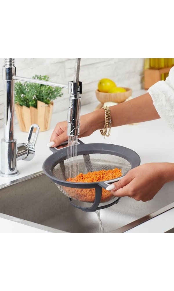 - İki kulplu tasarımı sayesinde kolayca tutulabilir ve makarna veya sebzeleri süzmek için pratik bir kullanım sunar.