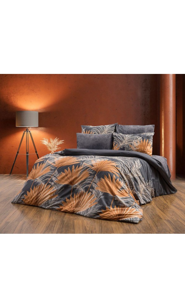Çift Kişilik Çarşaflı Nevresim Takımı Pamuklu 4 Parça Desenli Palmiye