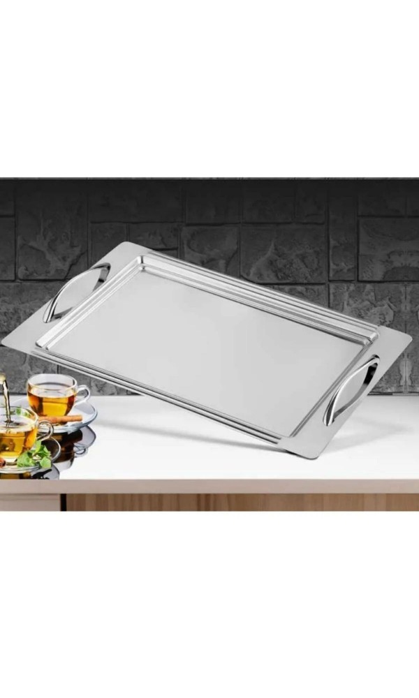 Ela 18/10 Cr-ni Paslanmaz Silver Ikramlık Sunumluk Servis Ve Çay Kahve Tepsisi