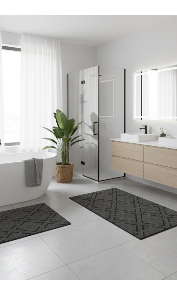 Oabhome Safir 2'li Banyo Paspası Seti – Yıkanabilir, Kaymaz Taban, Renkli Dekoratif, Dijital Baskı, Siyah