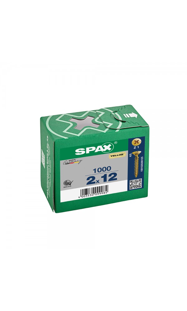 Spax Sunta Vidası, Evrensel Vida, 2 x 12 mm, 1.000 Adet, Tam Dişli, Havşa Başlı, Yıldız Z1, SPAX-S Versiyon, YELLOX Kaplama