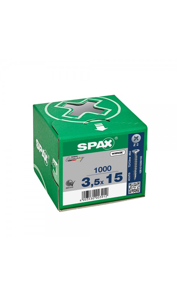 Spax Sunta Vidası, Evrensel Vida, 3,5 x 15 mm, 1.000 Adet, Tam Dişli, Havşa Başlı, Yıldız Z2, 4KESİCİ UÇlu, WIROX Kaplama