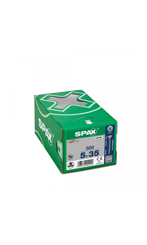 Spax Sunta Vidası, Evrensel Vida, 5 x 35 mm, 500 Adet, Tam Dişli, Havşa Başlı, Yıldız Z2, 4KESİCİ UÇlu, WIROX Kaplama