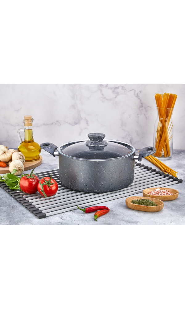 BersaChef Fiesta Granit Gri Derin Kapaklı Tencere Yanmaz Yapışmaz 24cm
