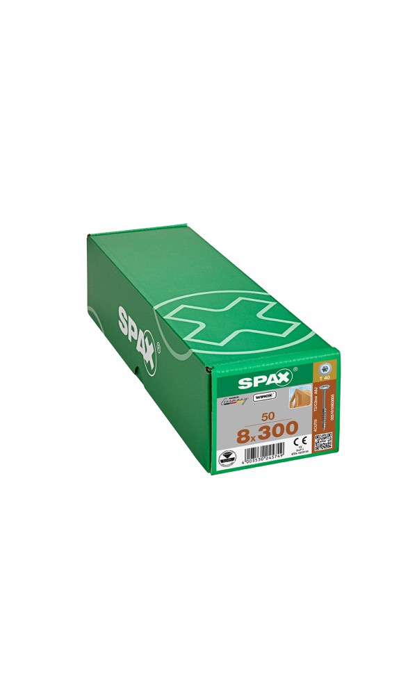 Spax HI.FORCE, 8 x 300 mm, 50 Adet, Yarım Dişli, Pul Başlı, T-STAR plus T40, 4KESİCİ UÇlu, WIROX Kaplama