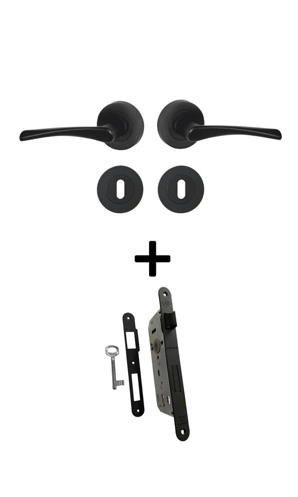 Bersa Yapı Bravo Rozetli Oda Kapı Kolu ve Sesiz Gömme Kilit Mat siyah 1 Kapılık Takım Siyah Kapı Kilidi 40mm
