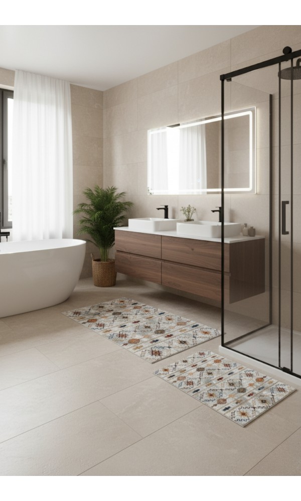 Oabhome Safir 2'li Desenli Banyo Paspası Seti