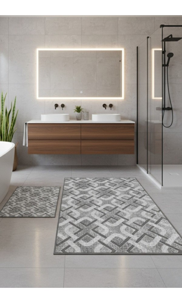 Oabhome Safir 2'li Banyo Paspası Seti – Yıkanabilir, Kaymaz Taban, Renkli Dekoratif, Dijital Baskı, Gri