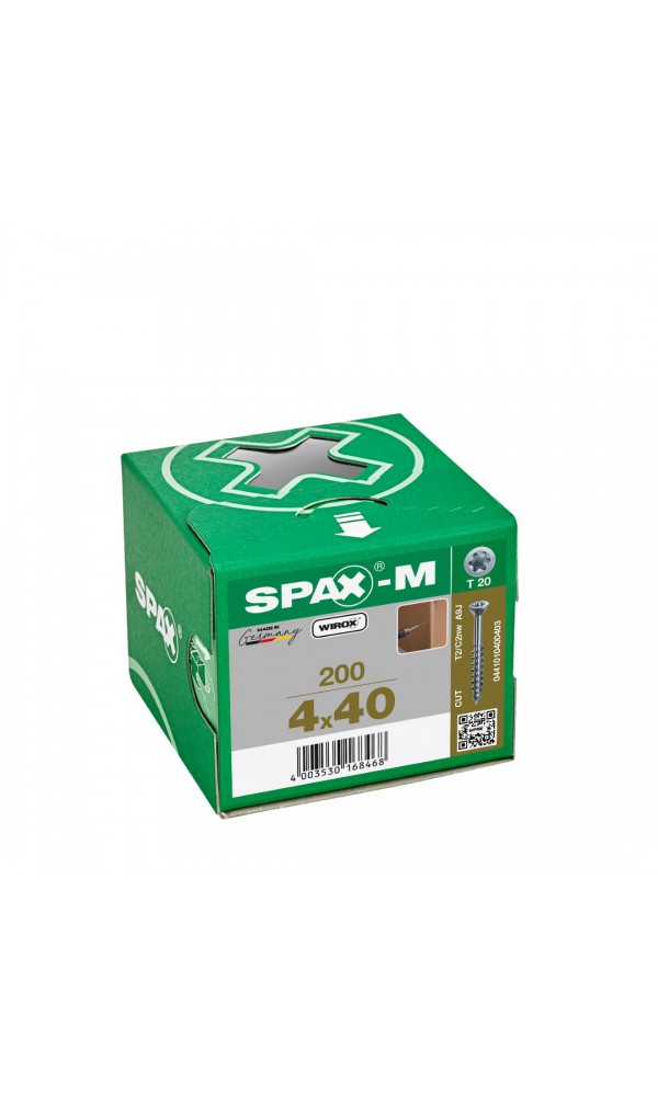 SPAX-M, 4 x 40 mm, 200 Adet, Yarım Dişli, Havşa Başlı, T-STAR plus T20, KESİCİ Uçlu, WIROX Kaplama
