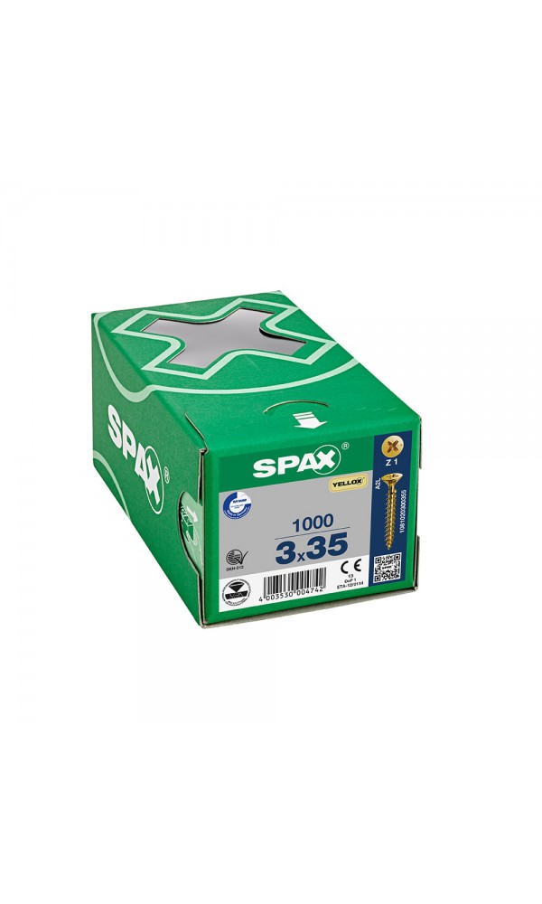Spax Sunta Vidası, Evrensel Vida, 3 x 30 mm, 1.000 Adet, Tam Dişli, Havşa Başlı, Yıldız Z1, SPAX-S Versiyon, YELLOX Kaplama