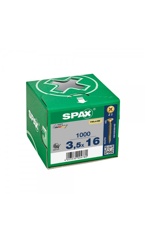 Spax Sunta Vidası, Evrensel Vida, 3,5 x 16 mm, 1.000 Adet, Tam Dişli, Havşa Başlı, Yıldız Z2, 4KESİCİ UÇlu, YELLOX Kaplama