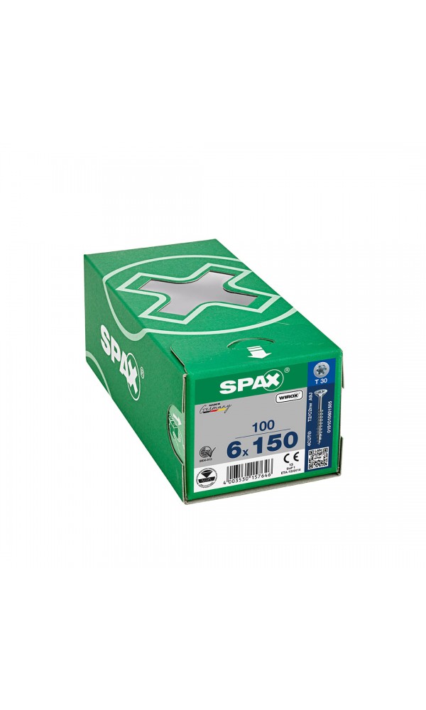 Spax Sunta Vidası, Evrensel Vida, 6 x 150 mm, 100 Adet, Yarım Dişli, Havşa Başlı, T-STAR plus T30, 4KESİCİ UÇlu, WIROX Kaplama