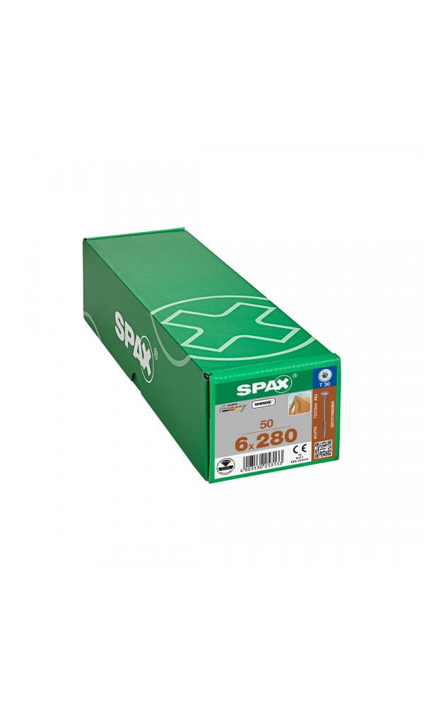 Spax HI.FORCE, 6 x 280 mm, 50 Adet, Yarım Dişli, Pul Başlı, T-STAR plus T30, 4KESİCİ UÇlu, WIROX Kaplama
