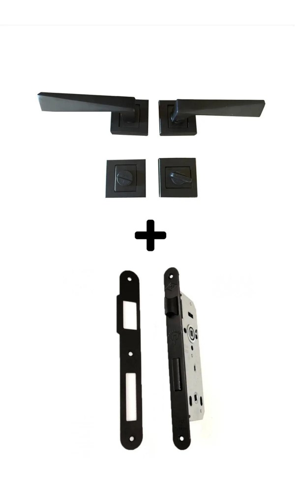 Bersa Yapı Prizma Kare Rozet WC Kapı Kolu ve Sessiz Gömme Kilit Mat siyah 1 Kapılık Takım Siyah Kapı Kilidi 40mm