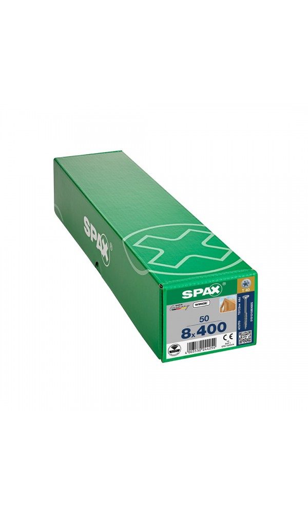Spax Ahşap Konstrüksiyon Vidası, 8 x 400 mm, 50 Adet, Yarım Dişli, Havşa Başlı, T-STAR plus T40, 4KESİCİ UÇlu, WIROX Kaplama