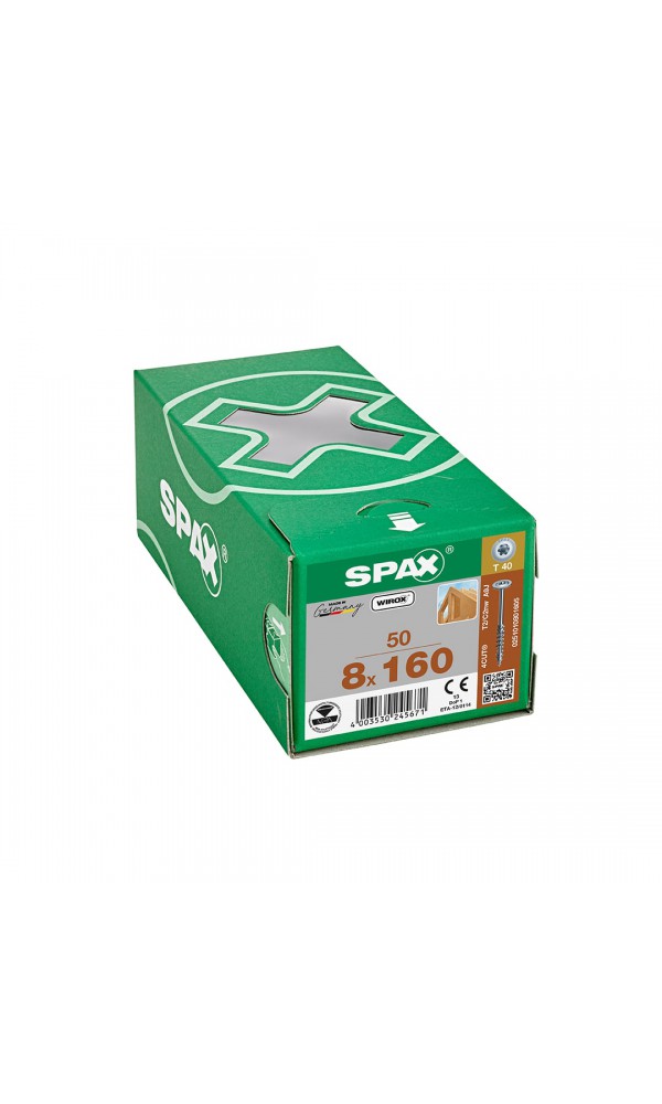 Spax HI.FORCE, 8 x 160 mm, 50 Adet, Yarım Dişli, Pul Başlı, T-STAR plus T40, 4KESİCİ UÇlu, WIROX Kaplama
